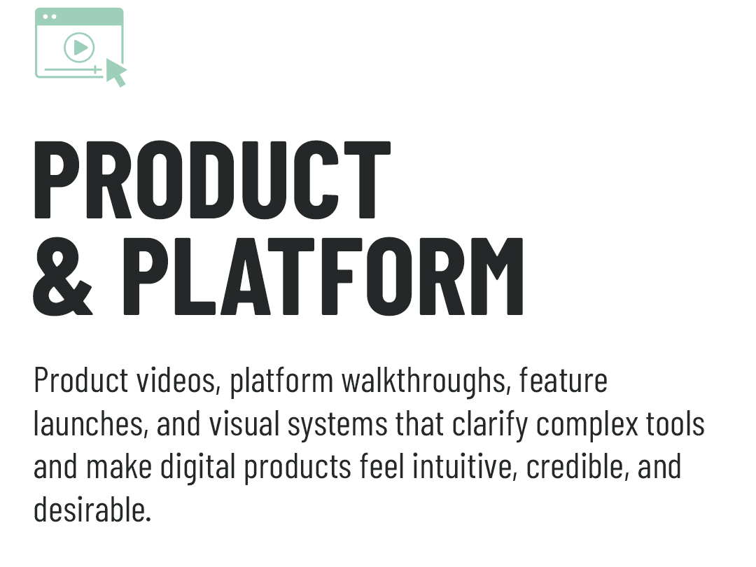 We design and animate product, brand, and marketing content for tech teams that need clarity, speed, and polish. From product launches and explainers to trade show systems and sales enablement, we partner with teams to turn complex ideas into clear, compelling visuals. Industries We work primarily with: SaaS & Software | B2B & Enterprise | Product & Platform | Technology & AI | Marketing & Growth